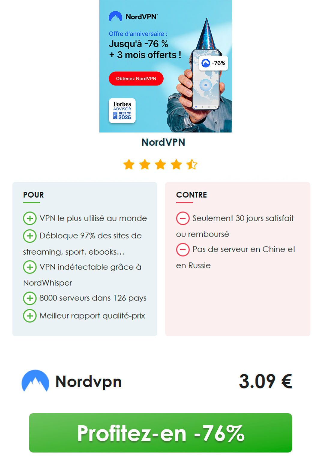 Besoin d’un bon VPN ? Téléchargez NordVPN 🗻 ou CyberGhost 👻, ce sont les meilleurs que j’utilise 👌